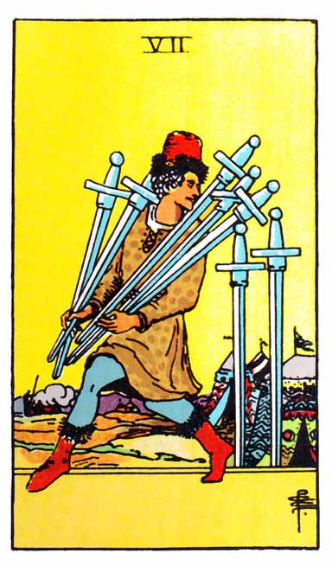 - 소드 7 + 소드 5: 비열한 수단을 동원해 승리하려는 욕구. 인간관계의 파탄을 예고.